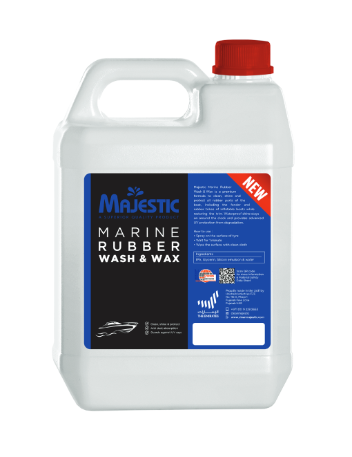 Marine Rubber Wash & Wax is a premium formula to clean, shine and protect all rubber parts of the boat while restoring the trim. Water-proof shine stays on around the clock and provides advanced UV protection from degradation.